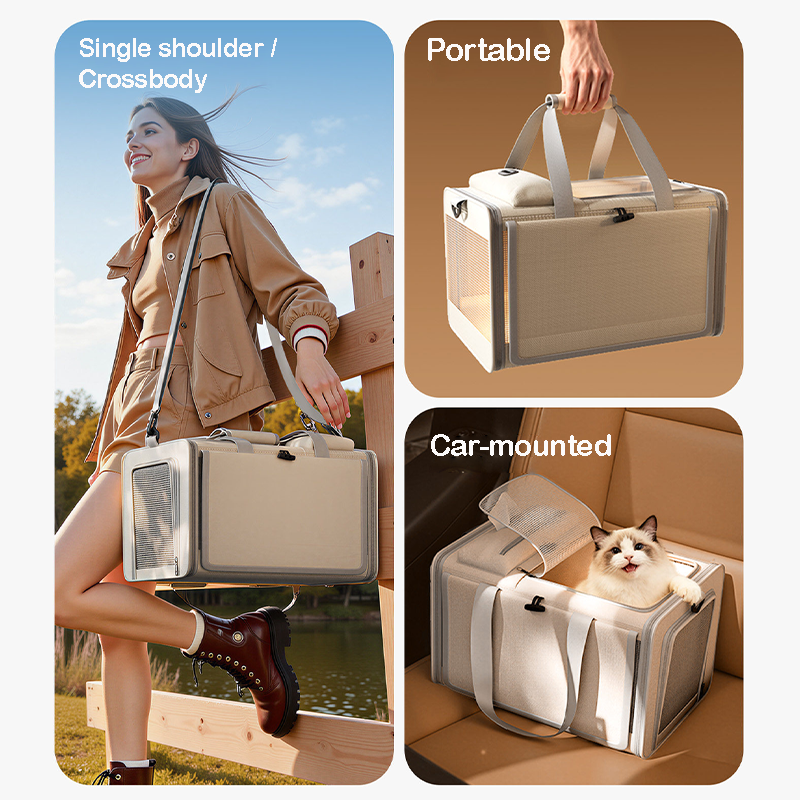 This large capacity cat carrier bag is designed for convenient and comfortable travel with your cat. The spacious interior provides enough room for movement, helping your pet stay relaxed during outings. Designed for versatility, it can be carried by hand or worn over the shoulder for easy transport on daily trips. The sturdy structure offers reliable support, making it suitable for vet visits, short travels, and everyday use. A cooling mat is included to provide extra comfort and help keep your pet cool during warm weather travel.