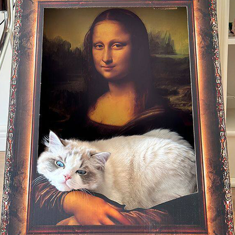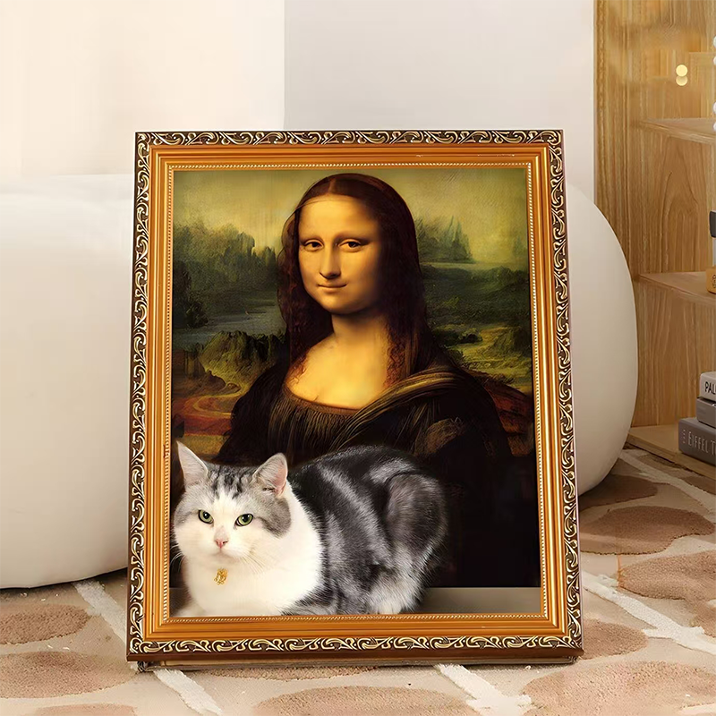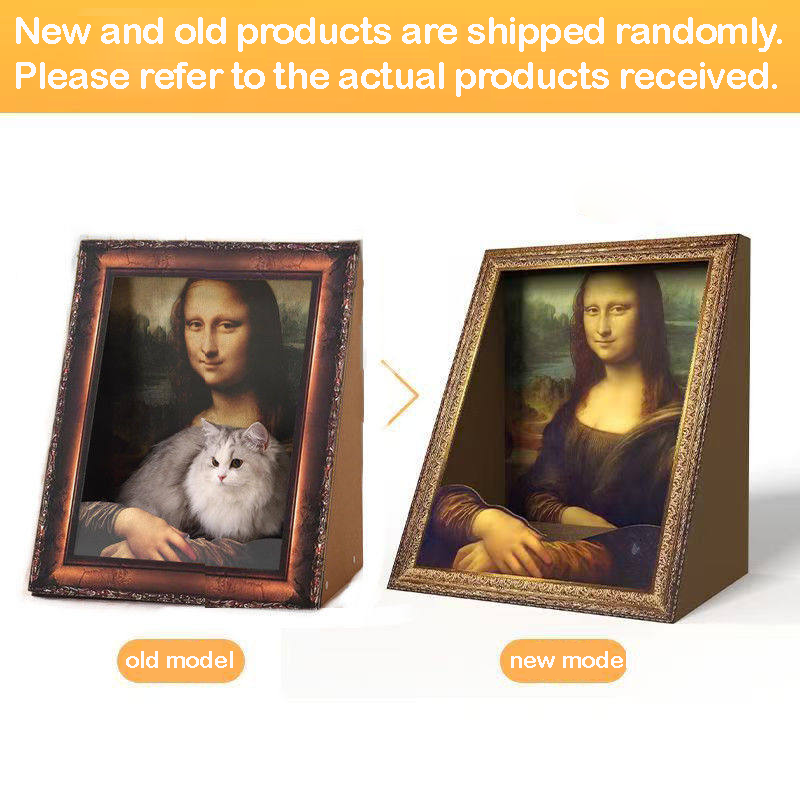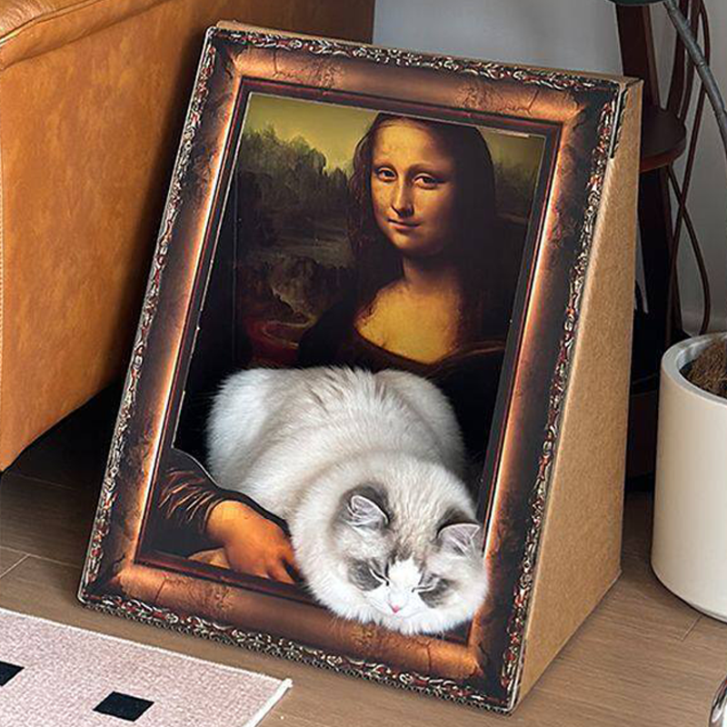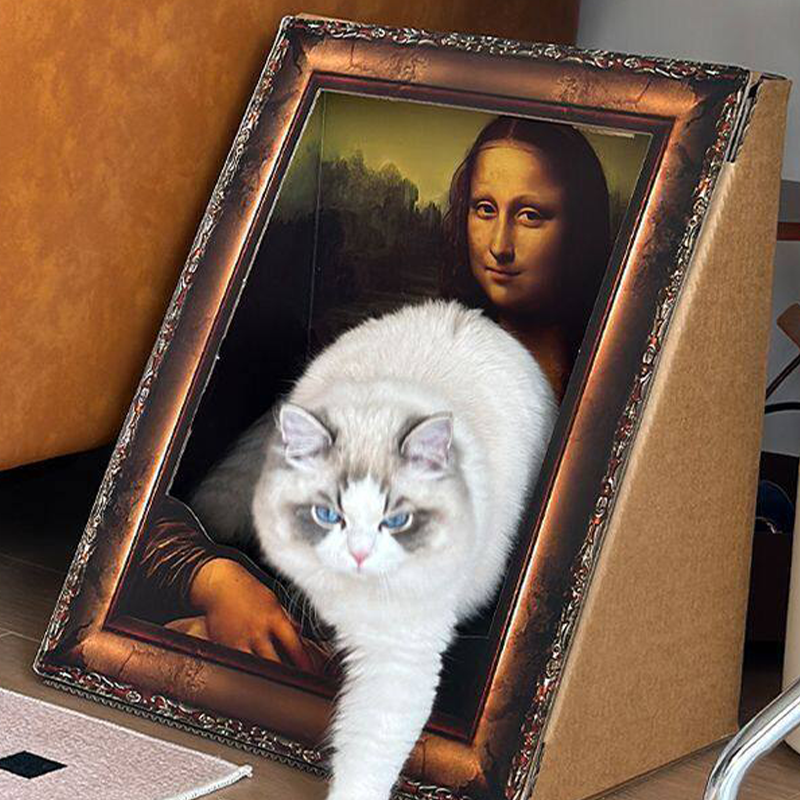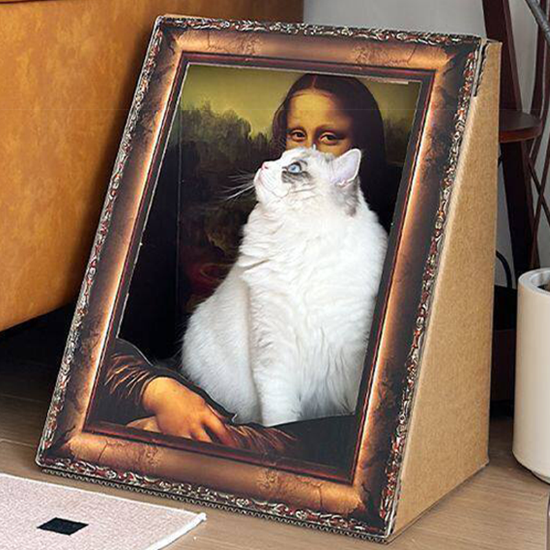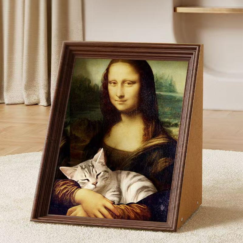 This Mona Lisa cat scratcher frame combines art inspired design with a functional scratching surface for cats. Styled like a classic picture frame, it adds a unique decorative touch to your home while providing a durable area for scratching. The vertical design allows cats to stretch and sharpen their claws comfortably, helping reduce damage to furniture. Made with wear resistant material, it is built for long lasting use and minimal shedding. Both a playful toy and a stylish decor piece, this cat scratcher brings creativity and practicality into your space.