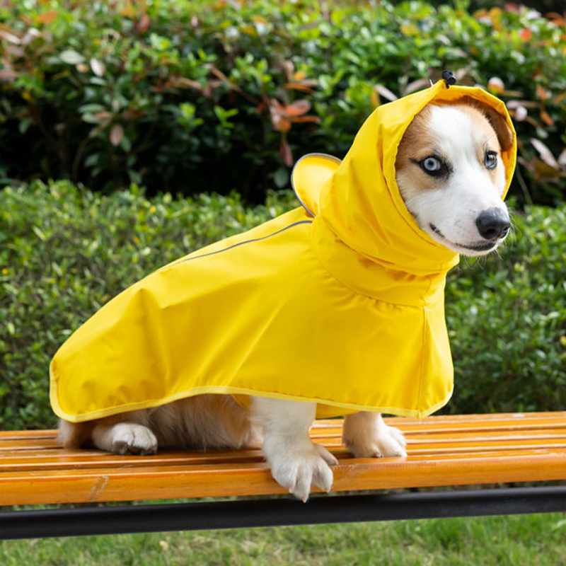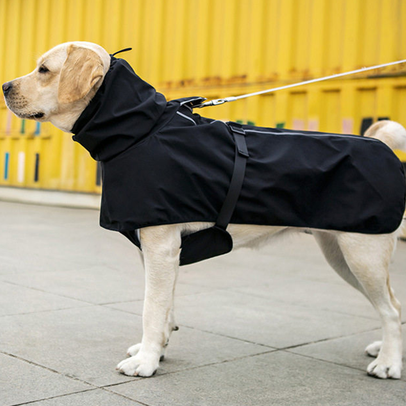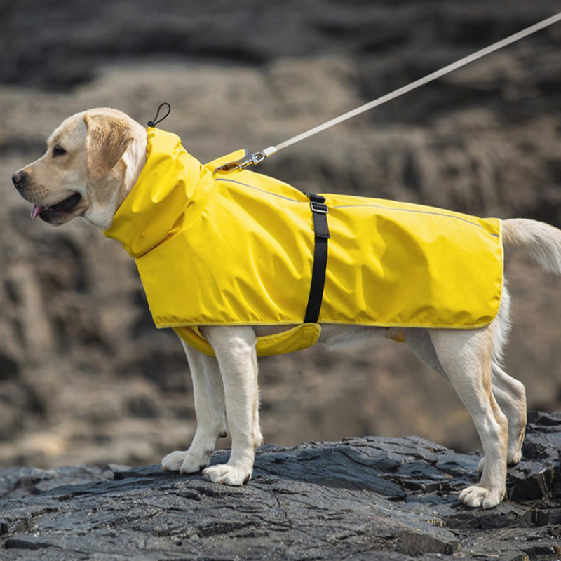 This outdoor waterproof dog raincoat poncho is designed for big dogs, providing reliable protection during rainy weather. The poncho style offers wide coverage over the back and sides, helping keep your dog dry while allowing free and comfortable movement. Made with lightweight and durable waterproof material, it is easy to put on and remove, making it ideal for daily walks and outdoor activities. Practical and convenient, this raincoat helps reduce mess and keeps your dog comfortable and protected on rainy days.