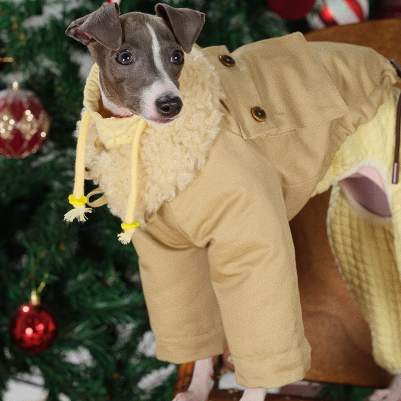 This reversible fleece lined trench coat is designed for Italian Greyhound dogs to stay warm and stylish. The soft thick lining provides cozy insulation, while the trench coat design with a foldable collar adds a fashionable touch. Suitable for daily wear, walks, and cool weather outings.
