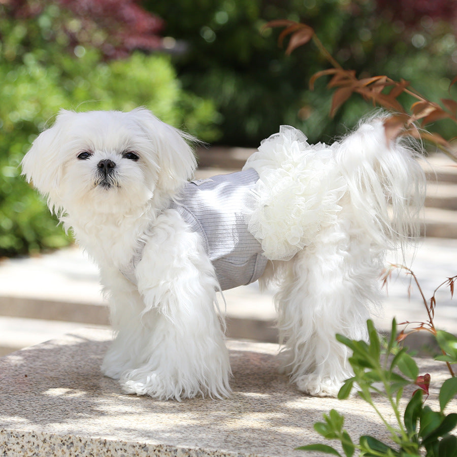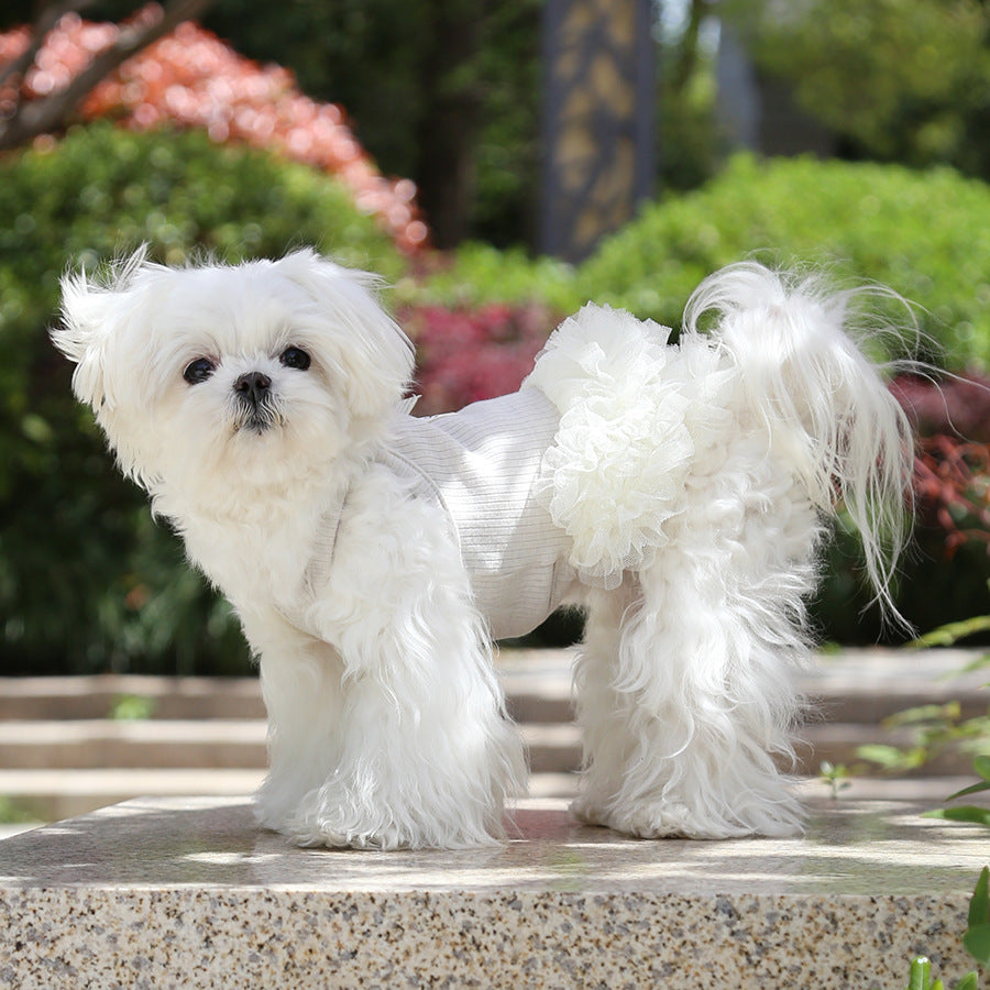 This cloud cream–colored dog dress is perfect for spring and summer, offering a soft, breathable, and lightweight outfit for your dog. Made from gentle, comfortable fabric, it keeps your dog cool and relaxed during warmer days. The adorable skirt design adds a charming and playful look, ideal for daily wear, outings, or special occasions. Easy to wear and gentle on your dog’s skin, this dress combines style, comfort, and breathability for your pet’s seasonal wardrobe.