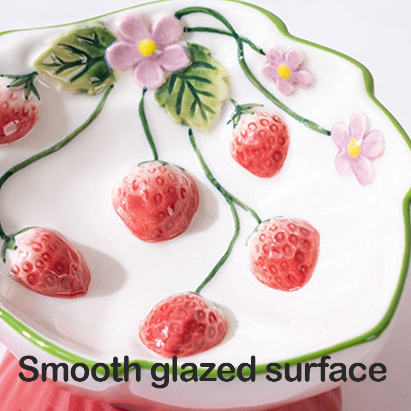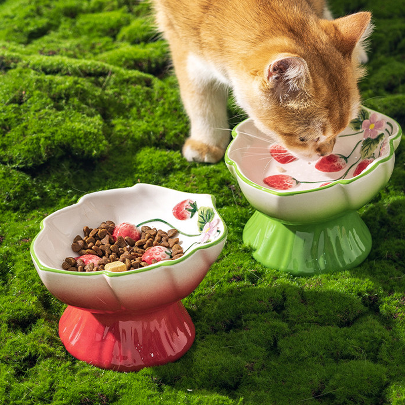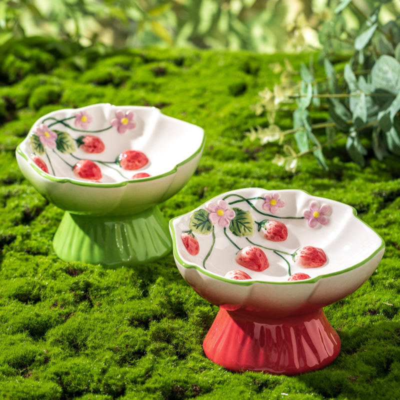Strawberry Ceramic Slow Feeder Elevated Cat Dog Bowl Anti Choke