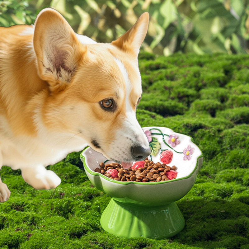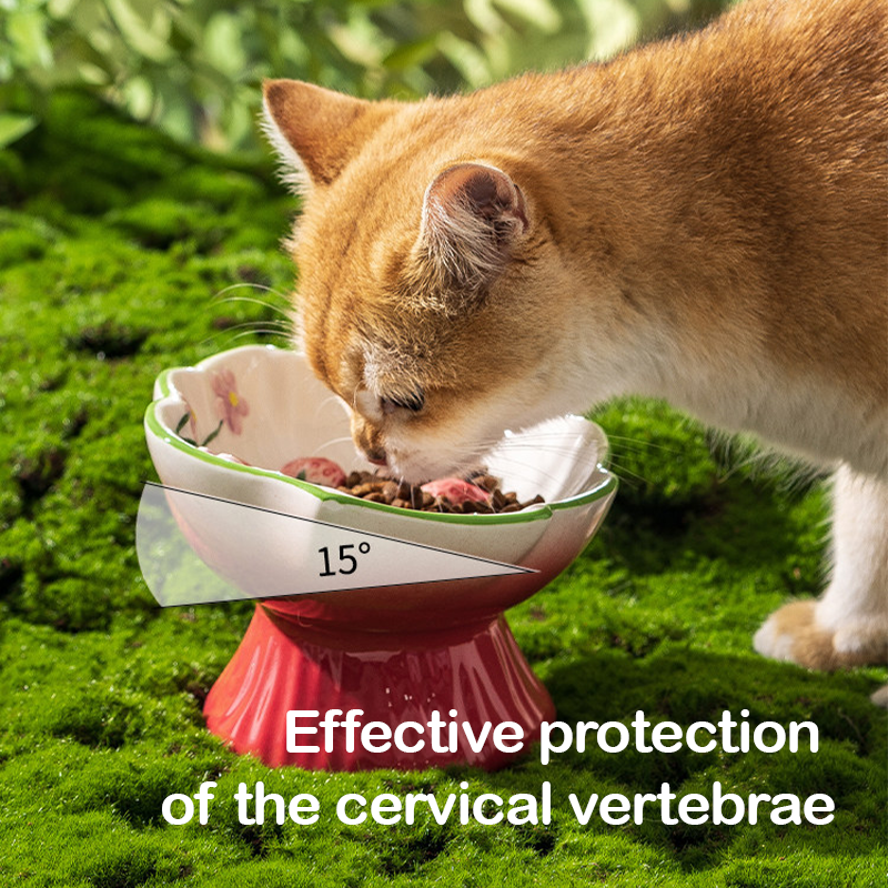 This strawberry shaped ceramic slow feeder elevated cat Dog bowl is designed to help prevent fast eating and reduce the risk of choking during meals. The slow feeder structure encourages pets to eat at a healthier pace, supporting better digestion. The elevated height helps protect the neck and reduce strain while eating, promoting a more comfortable posture. Made from durable ceramic, the bowl is sturdy and stable to help prevent tipping and spills. Its smooth glazed surface is easy to clean and suitable for daily use, making mealtime safer and more enjoyable for your pet.