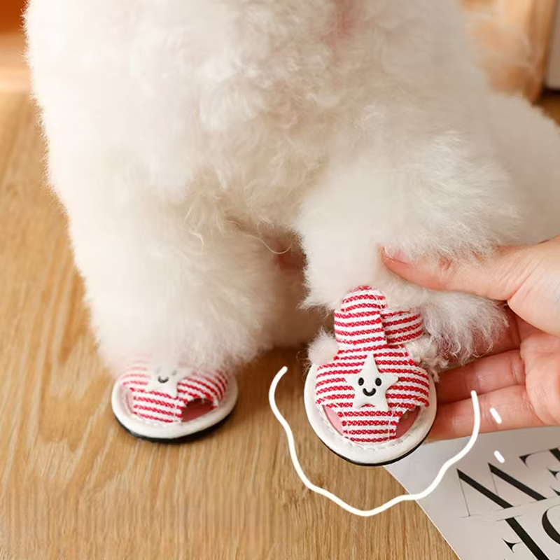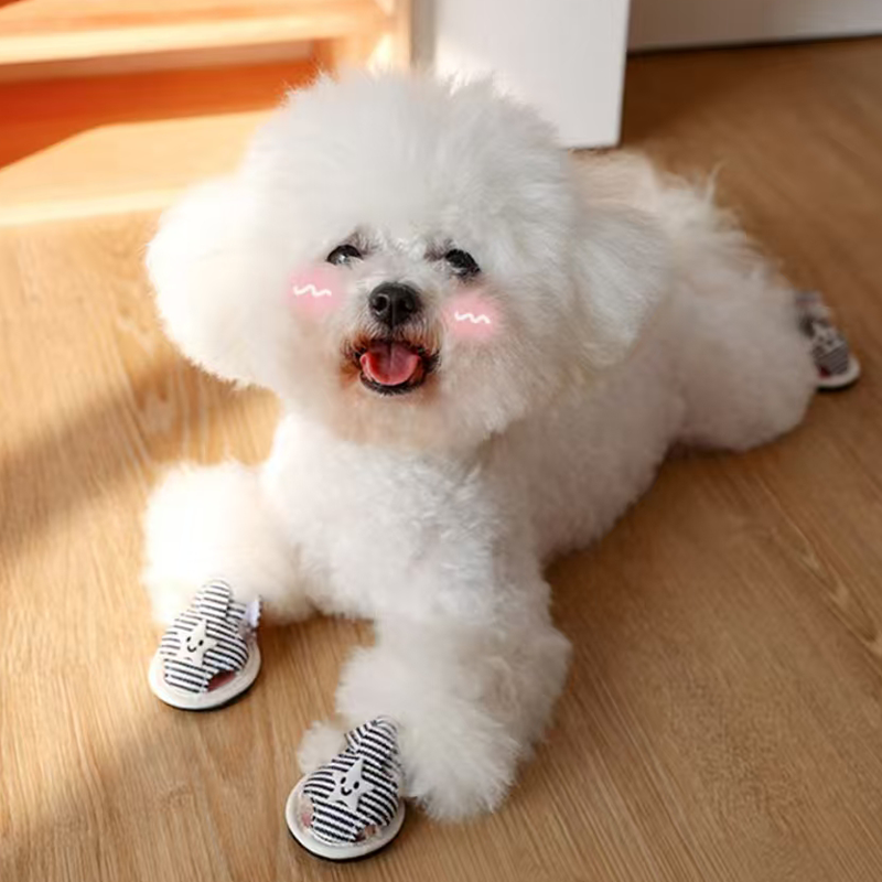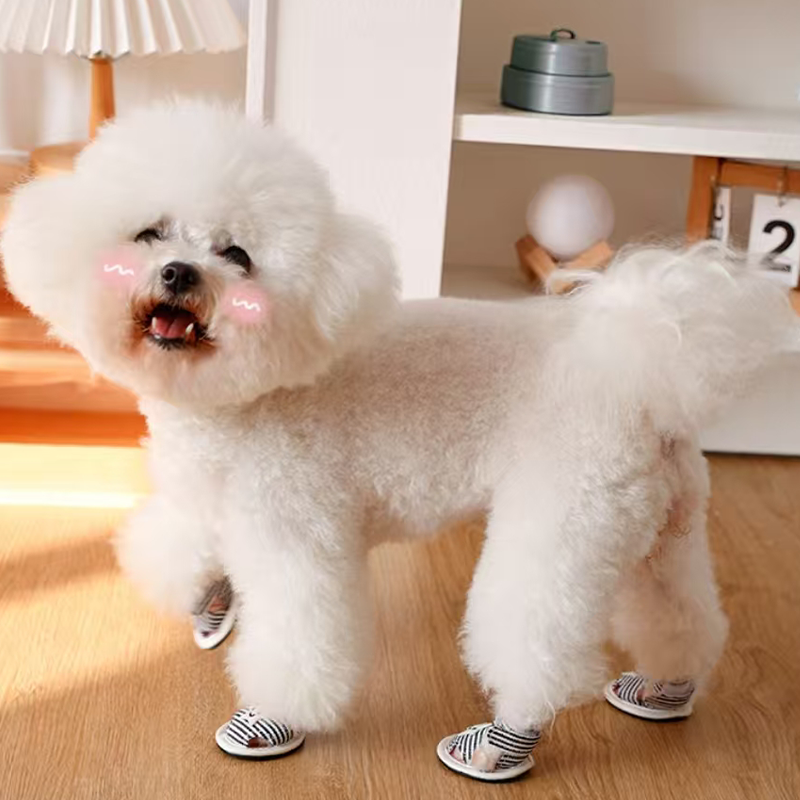 These summer canvas dog shoes are designed for small and medium dogs, offering breathable comfort and a secure fit for outdoor activities. The lightweight canvas material allows good airflow to keep paws cool, while the soft sole provides flexible support and comfort during walks. The secure design helps prevent the shoes from slipping off, making them suitable for daily outings and travel. Durable and practical, these dog shoes help protect paws from heat, dirt, and rough surfaces in warm weather.
