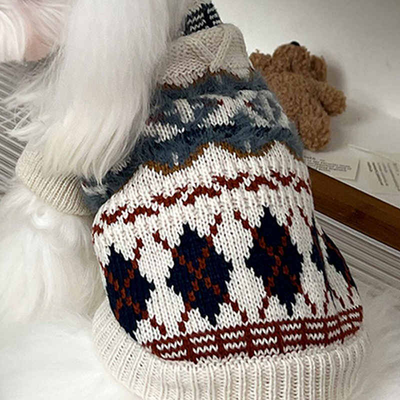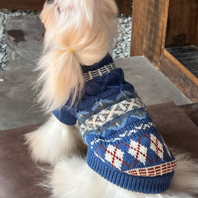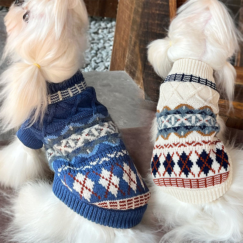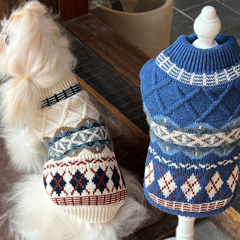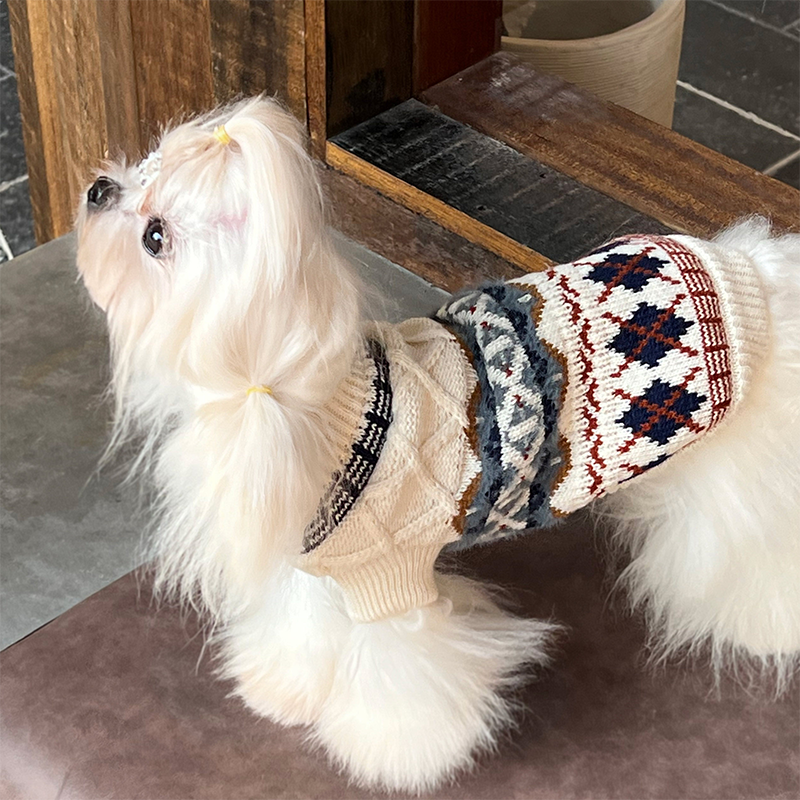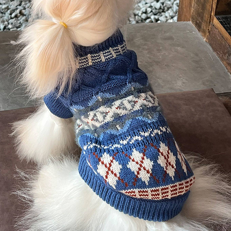 Designed for small medium dogs, this vintage knitted fall winter sweaters offers classic style with cozy seasonal warmth. The soft knit fabric provides breathable insulation while remaining comfortable for everyday wear. The relaxed two leg construction allows natural movement through the chest and shoulders, making it suitable for indoor lounging or outdoor walks in cooler weather. With its timeless retro inspired design, this sweater adds charm and warmth while maintaining a comfortable and flexible fit for your dog.