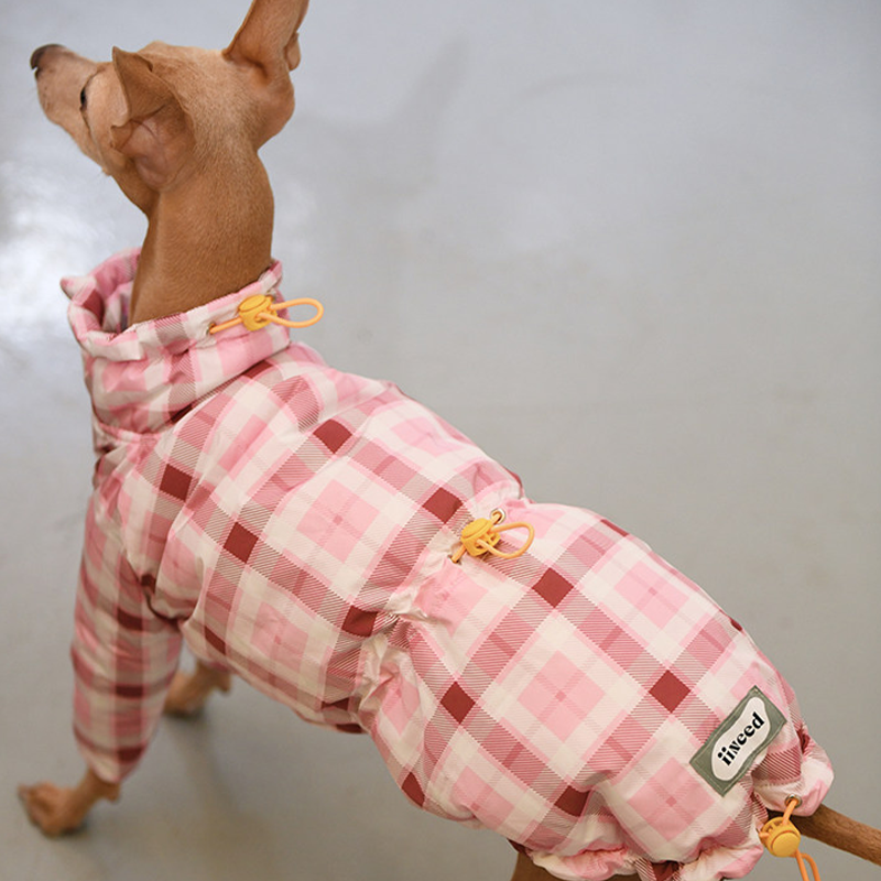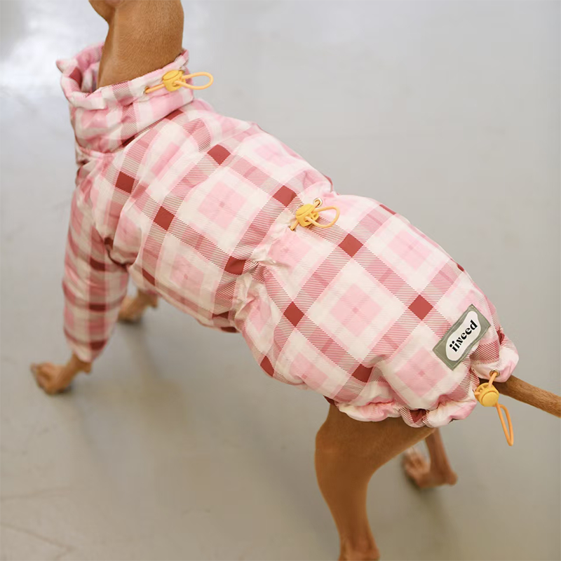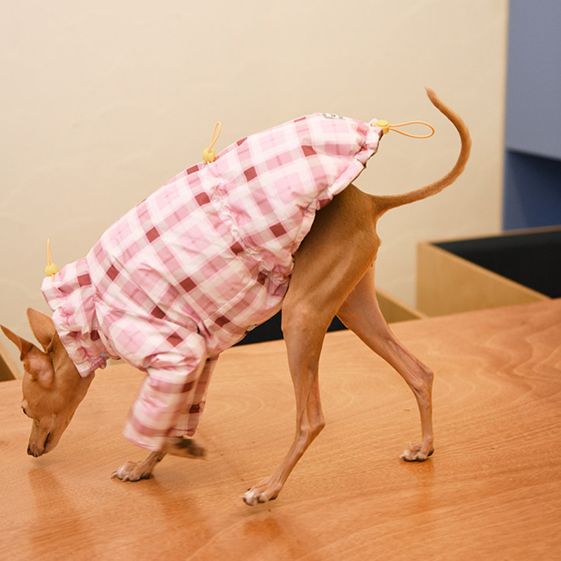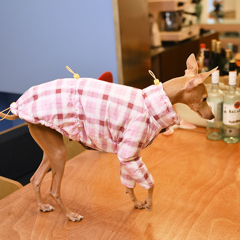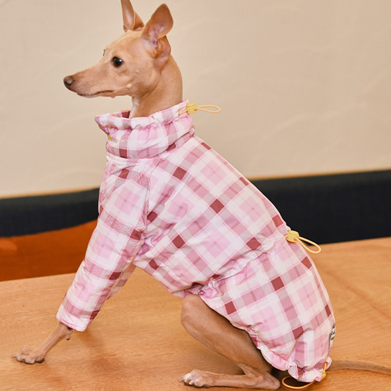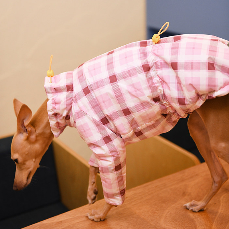 Designed for small Greyhound and Whippet dogs, this thick plaid winter two leg coat provides extra warmth and comfort during cold weather. The insulated cotton padding helps retain body heat while remaining lightweight enough for daily walks and outdoor activities. The two leg design allows easy movement and quick dressing, while the tailored fit follows the slim body shape of sighthounds for a secure and comfortable feel. Perfect for winter outings, this coat keeps your dog warm without restricting mobility.