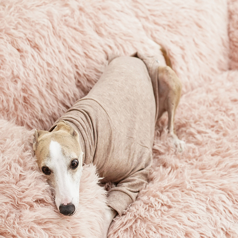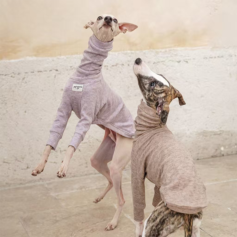 This ultra soft plush two leg shirt is designed for Italian Greyhound and Whippet dogs to stay warm and comfortable during autumn and winter. Made with skin friendly plush fabric, it feels gentle and cozy for sleeping and lounging. A practical leash opening on the back allows easy use with a harness, making it suitable for both indoor wear and short outdoor walks.