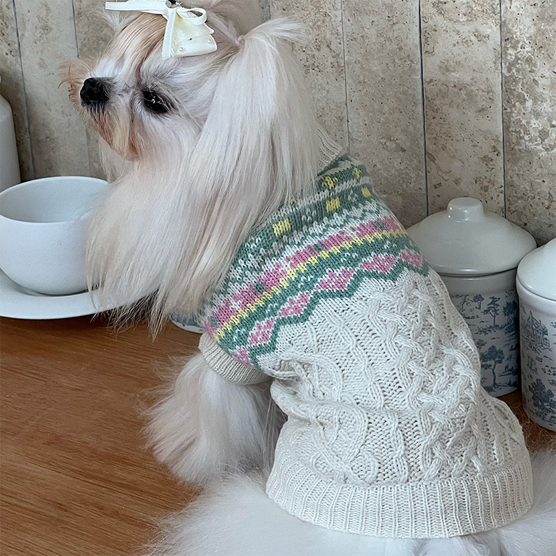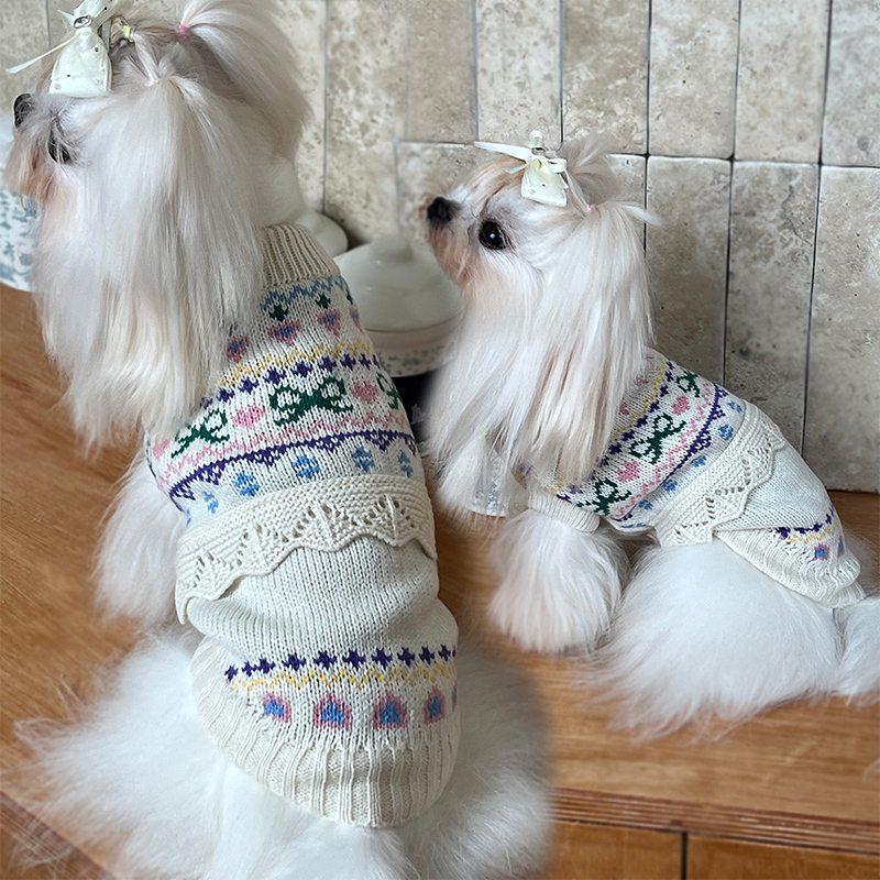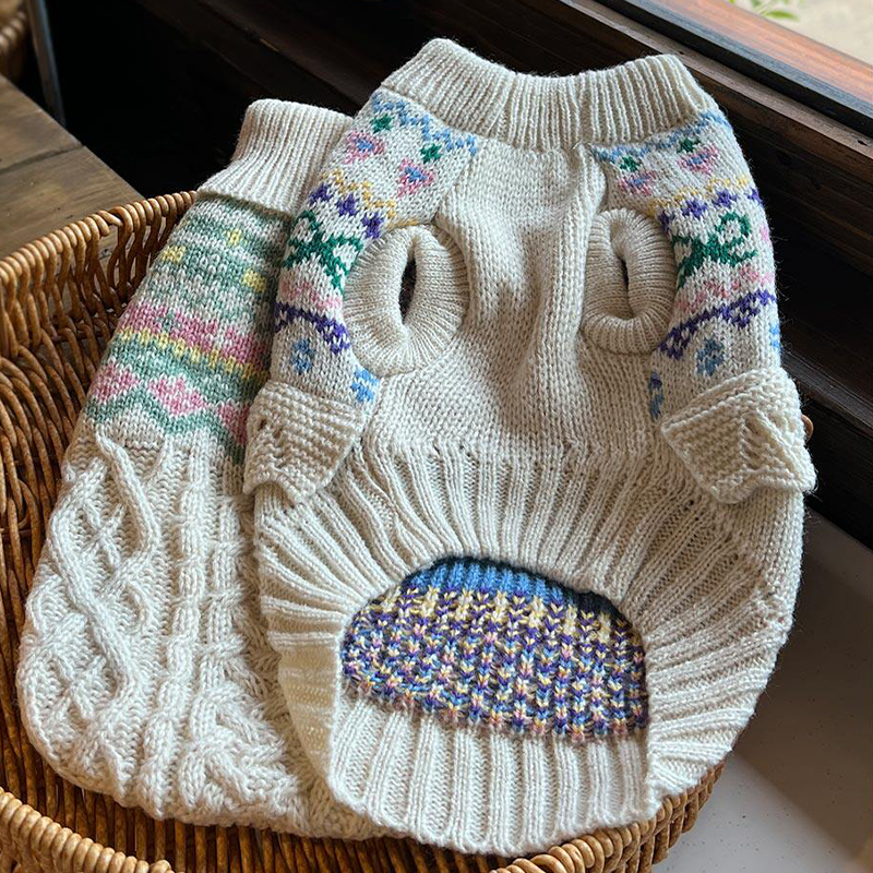 Designed for small medium dogs, this printed warm knitted fall winter sweaters delivers cozy insulation with a soft comfortable feel. The breathable knit fabric helps retain body heat while remaining gentle against the skin for everyday wear. Featuring a charming printed design, it adds personality and seasonal style while maintaining practical warmth. The relaxed two leg construction allows natural movement through the chest and shoulders, making it ideal for indoor lounging or outdoor walks in cooler weather.