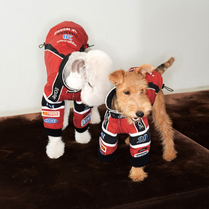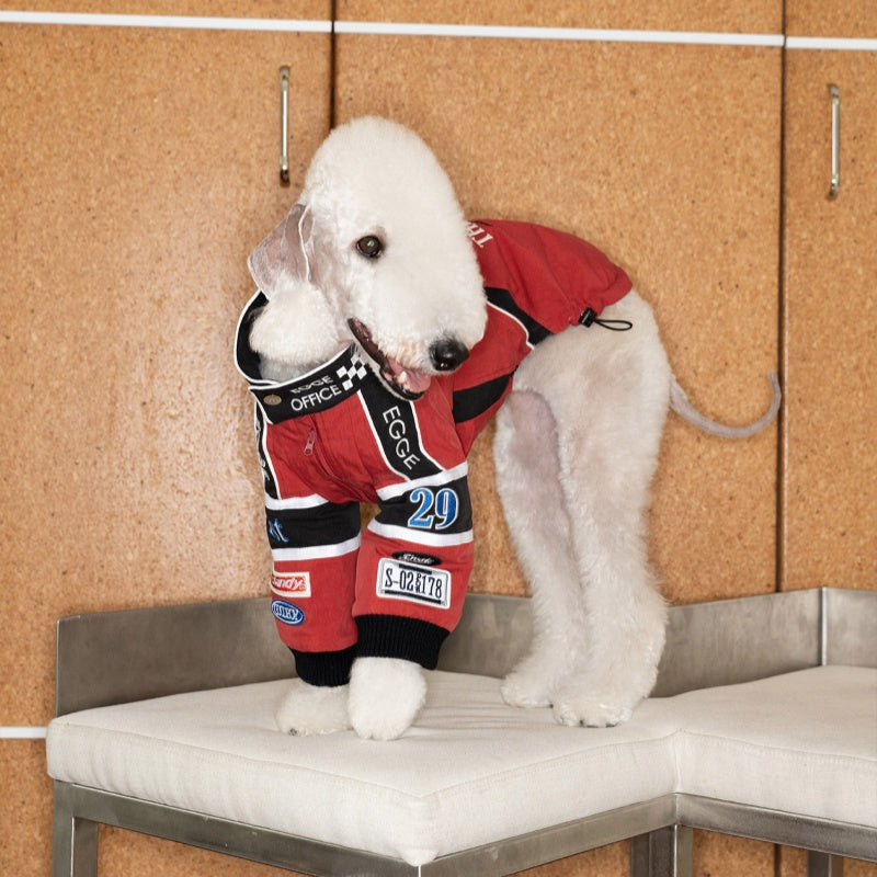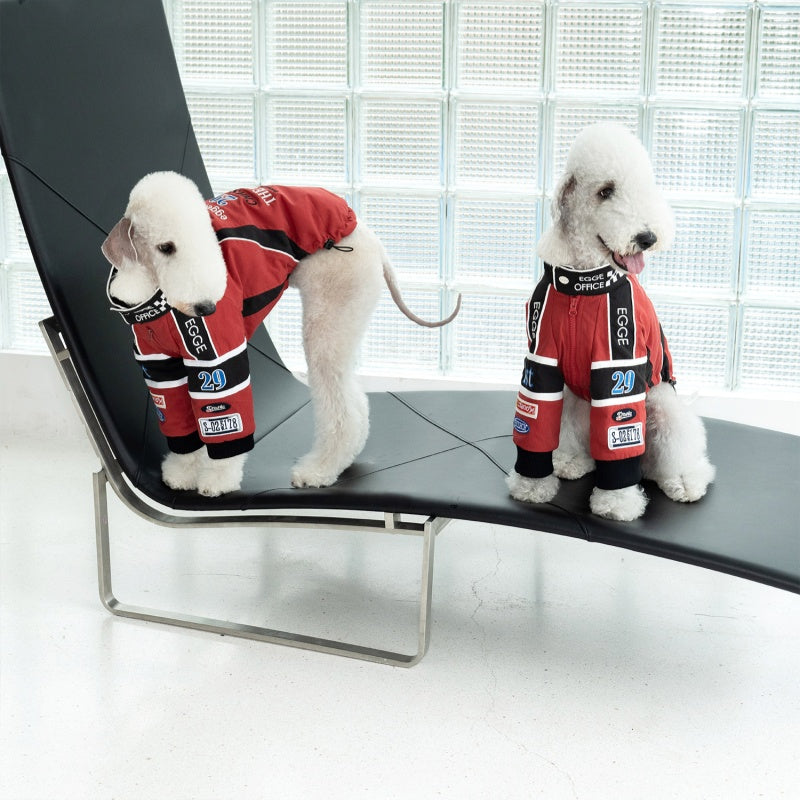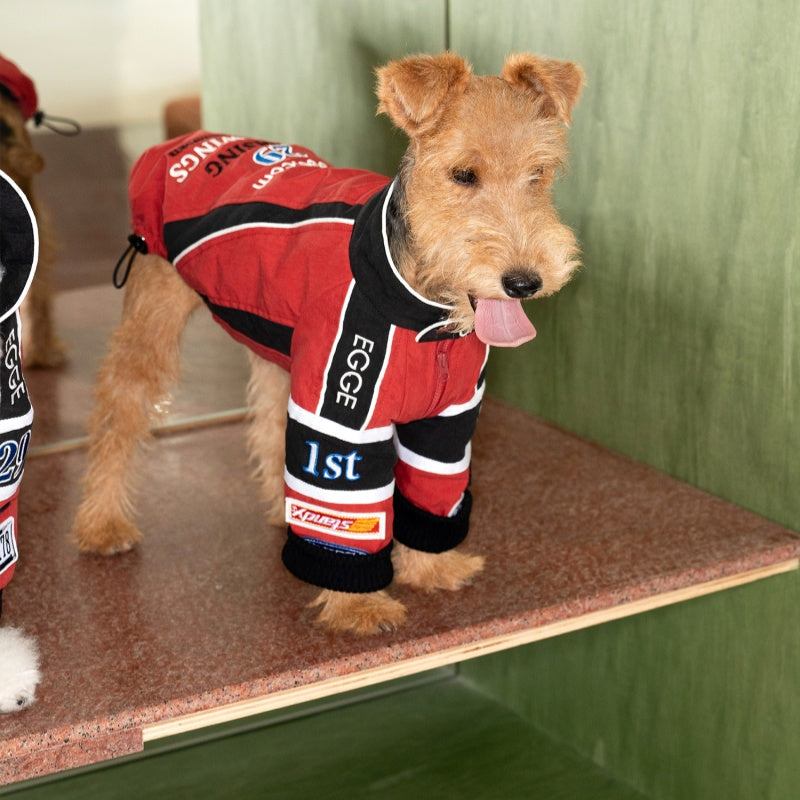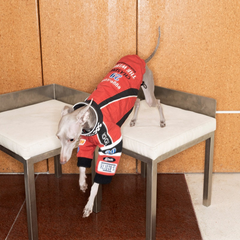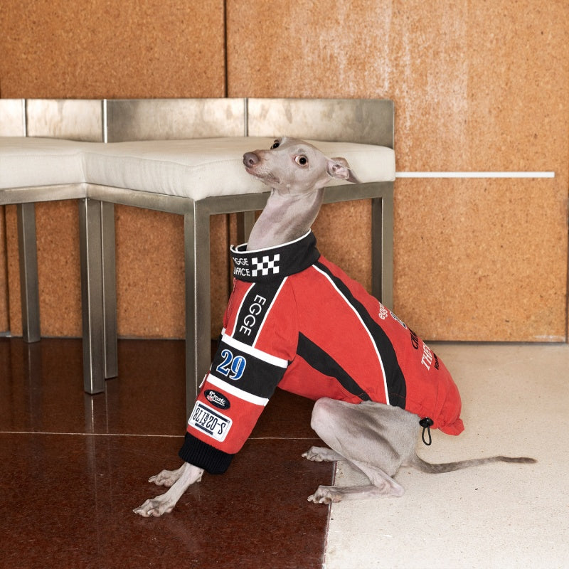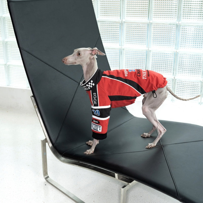 This vintage-style cotton jacket is expertly crafted for Bedlington, Greyhound, and Whippet breeds, combining classic racing embroidery with tailored comfort. Made from breathable cotton, it ensures your dog stays cool while showcasing a timeless racing aesthetic. The jacket’s design offers a snug yet flexible fit, allowing full freedom of movement during walks or casual outings. Durable stitching and quality embroidery detail make this piece both stylish and long-lasting, an ideal choice for owners who value heritage-inspired pet apparel with practical benefits.