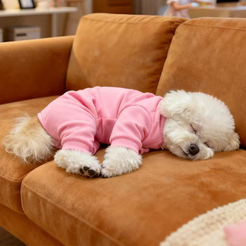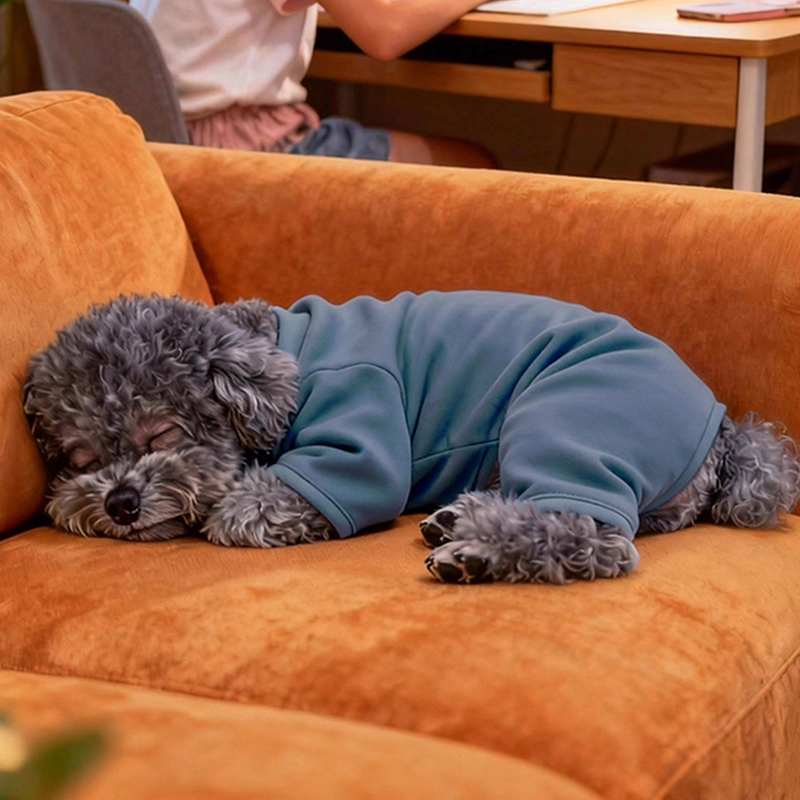 Designed for small medium dogs, this warm comfortable fall winter onesies provides full body coverage and cozy insulation during cooler seasons. The soft fabric helps retain body heat while remaining breathable and gentle against the skin for everyday wear. The four leg construction offers complete coverage without restricting natural movement, making it ideal for indoor lounging or outdoor walks in autumn and winter. Tailored for a secure yet flexible fit, this onesies serves as a practical base layer to keep your dog comfortable and warm.