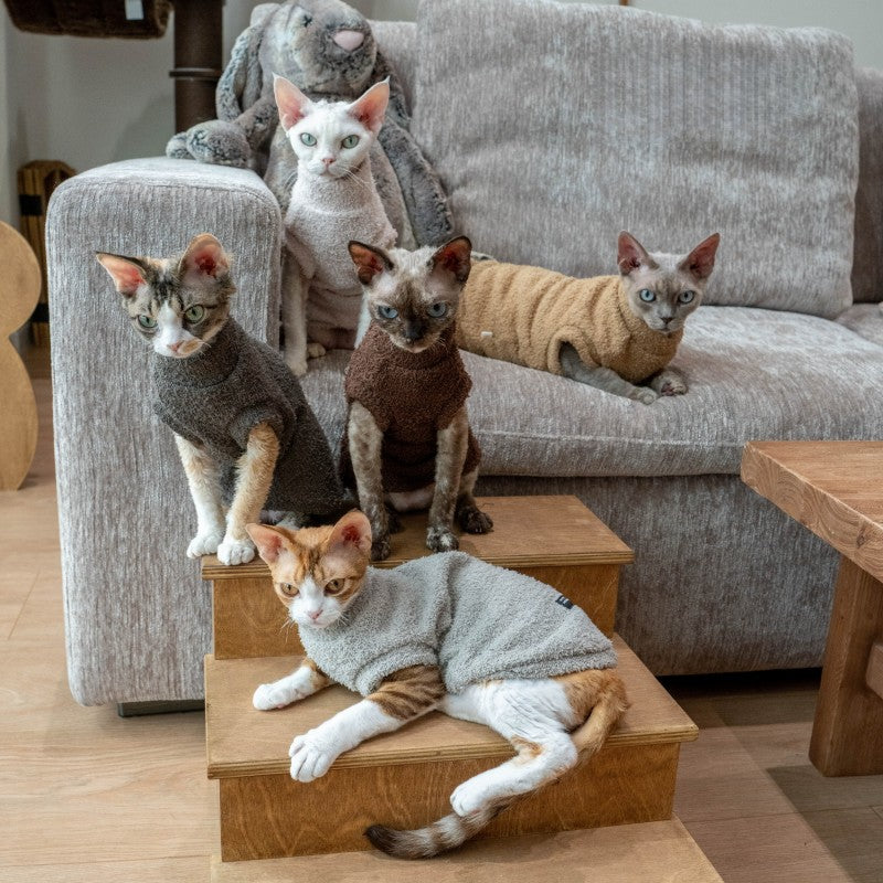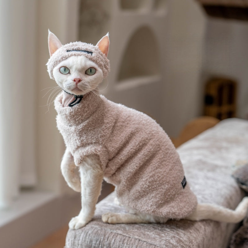 This warm hoodie suit with an attached hat is expertly designed for Devon Rex and Sphynx cats, offering cozy protection for their delicate skin. Crafted with soft, breathable fabric, it provides insulation without overheating, ensuring comfort in cooler environments. The tailored fit accommodates the unique body shape of these breeds, allowing freedom of movement while keeping your feline companion snug and stylish. Ideal for indoor or outdoor use, this suit helps maintain body warmth and can reduce stress associated with colder temperatures.
