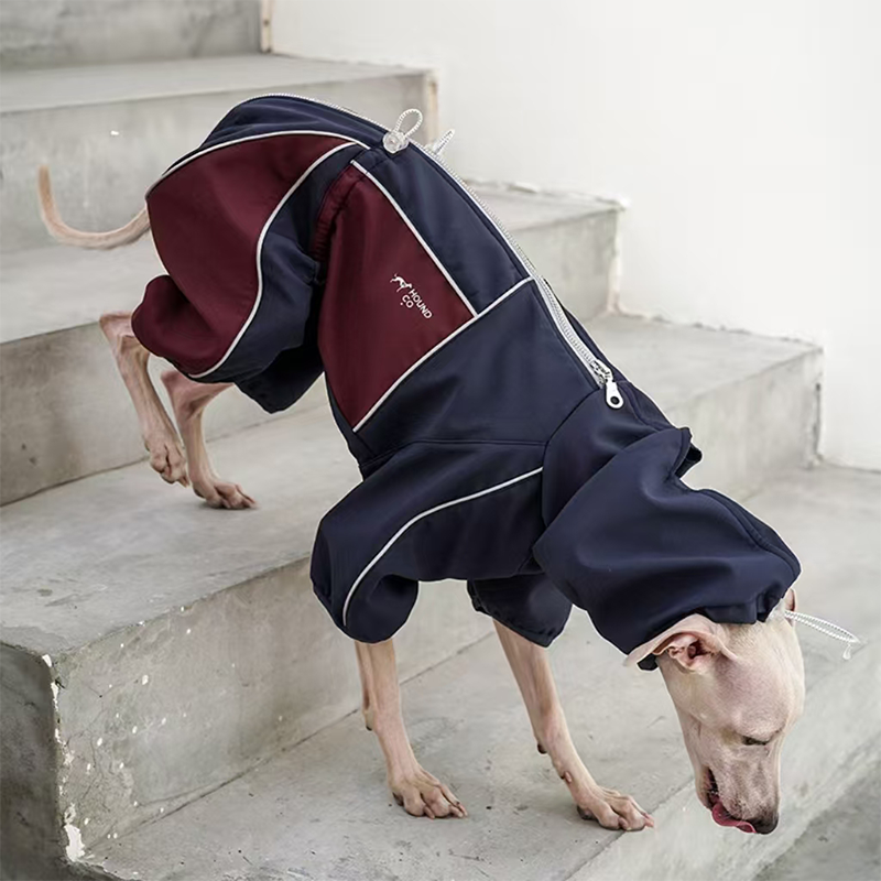 This weather resistant fleece snowsuits four leg outfit is designed to keep dogs warm and protected during daily wear in cooler conditions. Made with soft fleece fabric, it provides full body coverage, gentle insulation, and comfortable stretch for easy movement. A practical leash opening on the back allows convenient use with a harness, making it suitable for indoor lounging and outdoor walks.