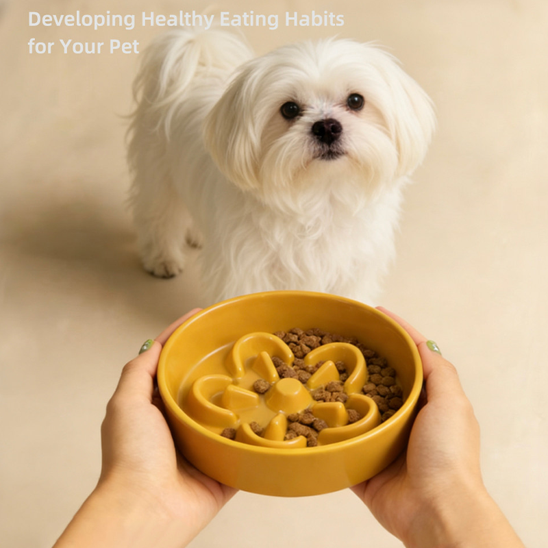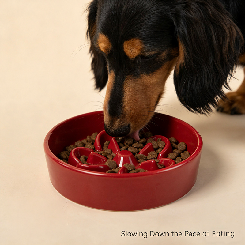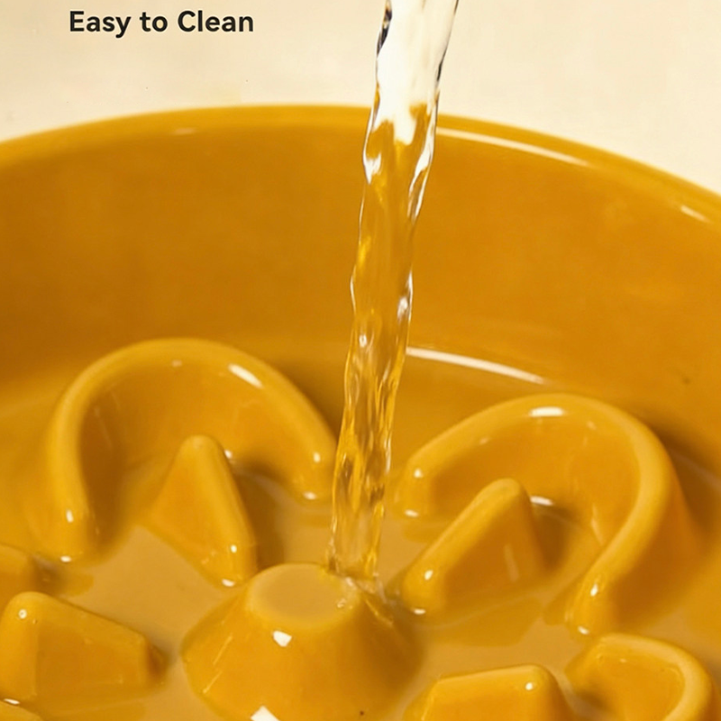 This wide mouth ceramic slow feeder dog bowl is designed to help prevent fast eating, choking, and vomiting during mealtime. The slow feeder structure encourages dogs to eat at a healthier pace, supporting better digestion and reducing gulping. The wide opening design makes it easy for dogs to access food comfortably while still slowing intake. Made from durable ceramic material, the bowl provides added weight and stability to help prevent tipping and spills. The smooth glazed surface is easy to clean and suitable for daily feeding, making mealtime safer and more comfortable for your dog.