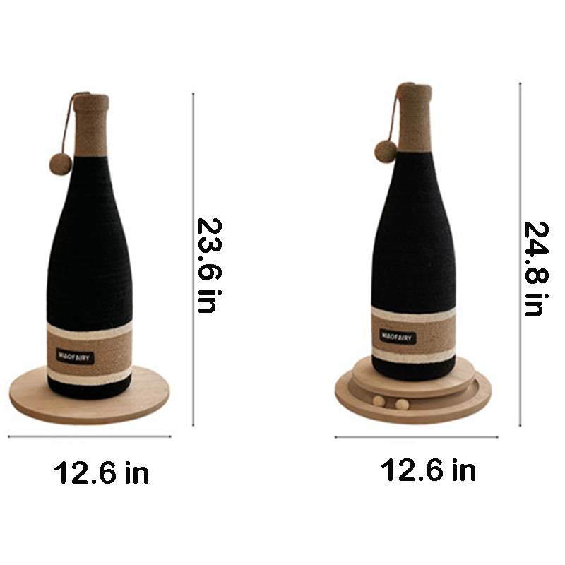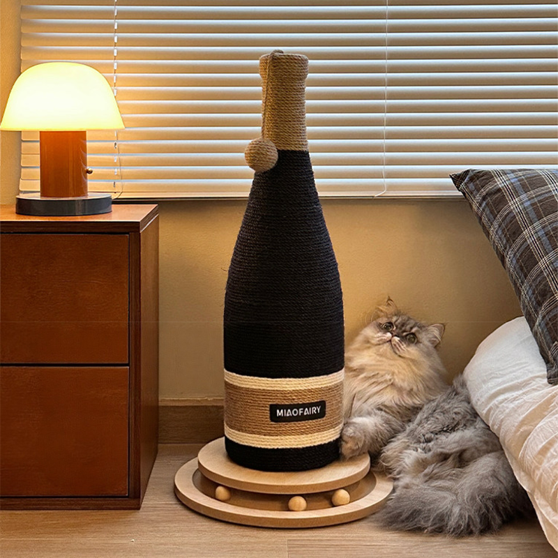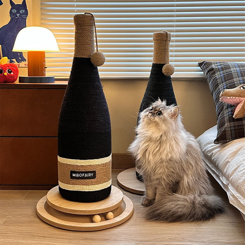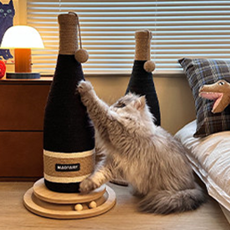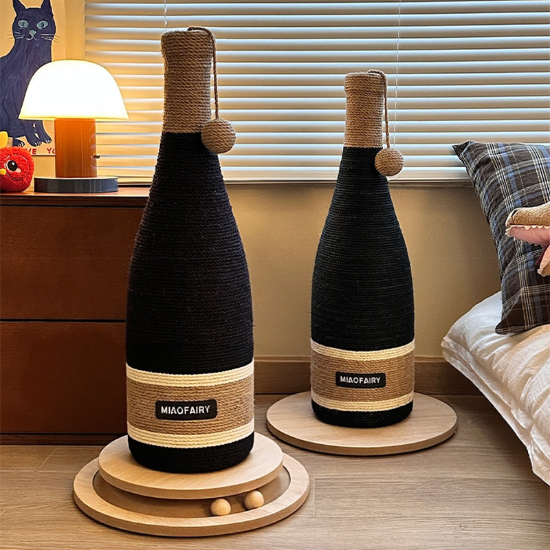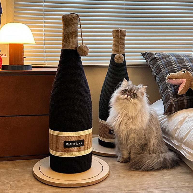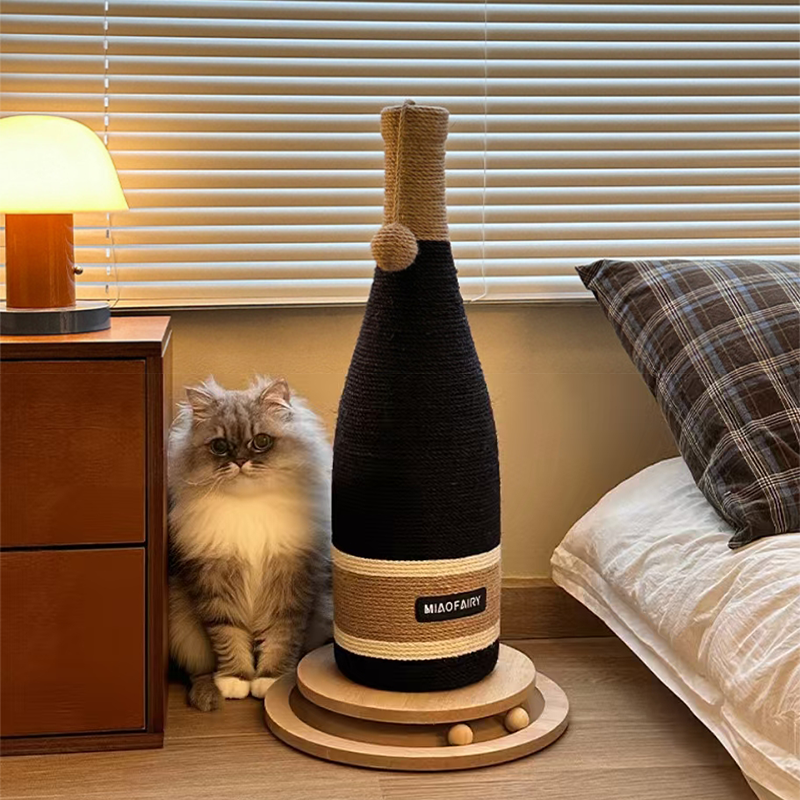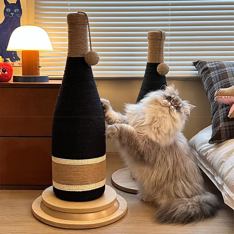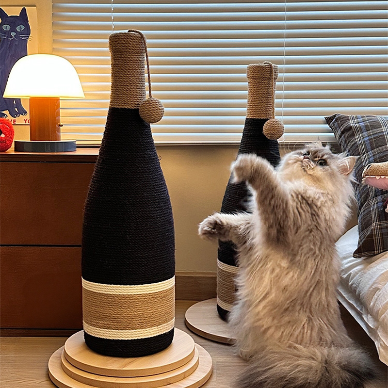 This wine bottle shaped sisal cat scratching post combines a fun design with a durable scratching surface for everyday use. Wrapped with strong natural sisal rope, it provides a tough texture that helps satisfy your cat’s scratching instincts while reducing damage to furniture. The vertical design allows cats to stretch and scratch comfortably, promoting healthy claw maintenance. Built to be wear resistant and low shedding, this scratching post also works as an engaging toy to keep your cat active and entertained. Creative and practical, it adds both function and decorative charm to your home.