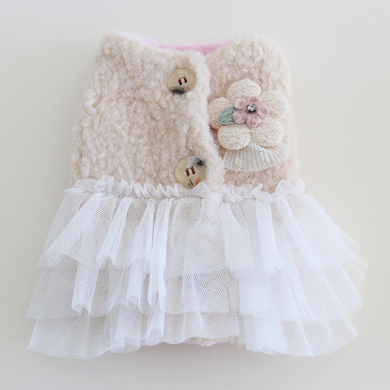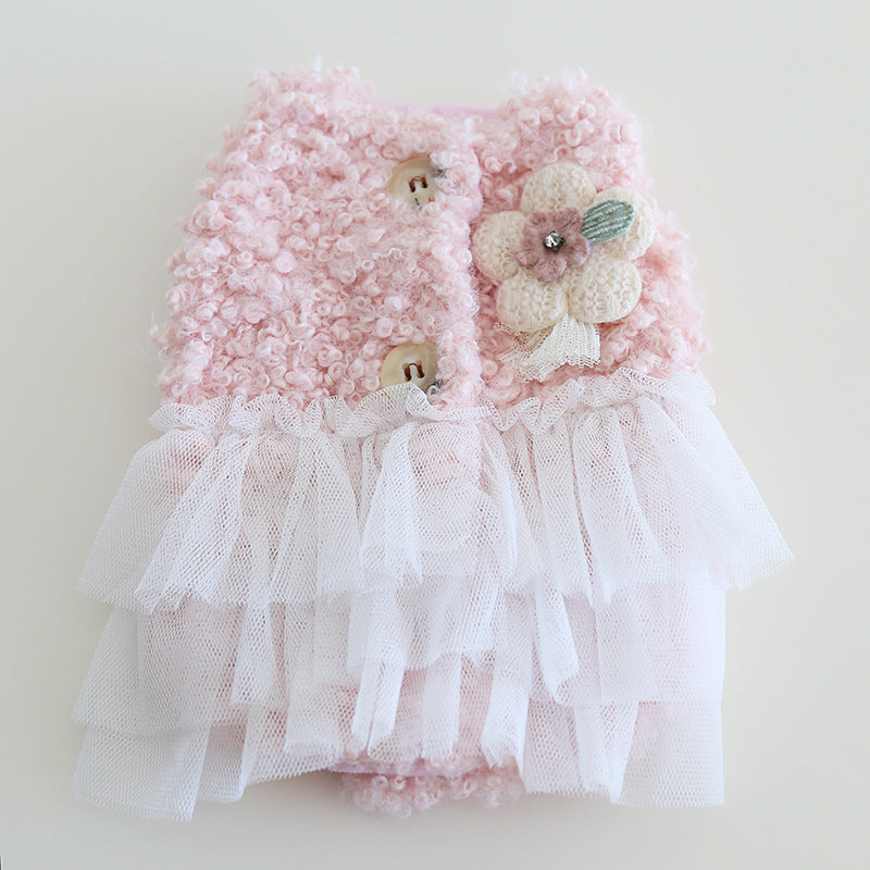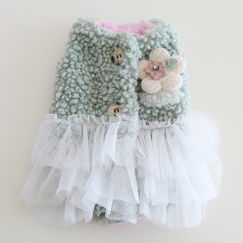 Keep your small to medium dog cozy and stylish this season with our Winter Warm Dress. Featuring a charming tricolor floral design layered with soft, furry tulle, this piece combines warmth with elegant aesthetics. The plush materials provide insulation during cold weather while the delicate tulle adds a touch of sophistication. Perfect for daily wear or special occasions, this dress ensures your pet stays comfortable and fashionable throughout winter.